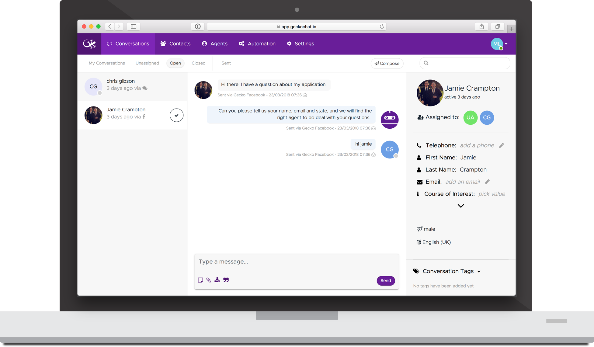We'll link the different channels together so that you can see conversations with a contact across all channels in a single place, and easily use those to send messages out to them.